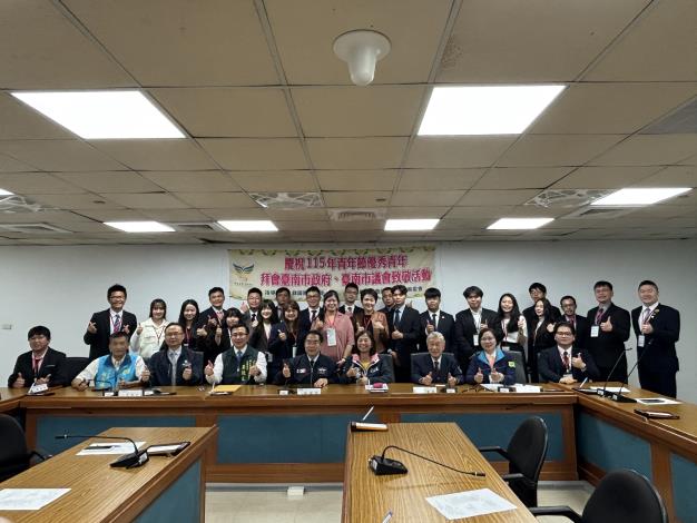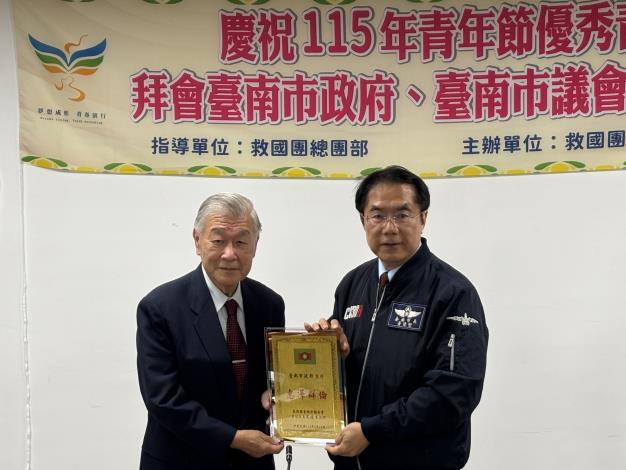 為響應青年節,昨(19)日救國團臺南市團委會主任委員沈達吉與總幹事葉淑貞率領本市社會及大專校院共25名優秀青年代表拜會市府,由黃偉哲市長親自接見,肯定青年在各領域的努力與貢獻,並勉勵青年持續關心公共議題、投入社會服務,為城市發展注入創新能量。